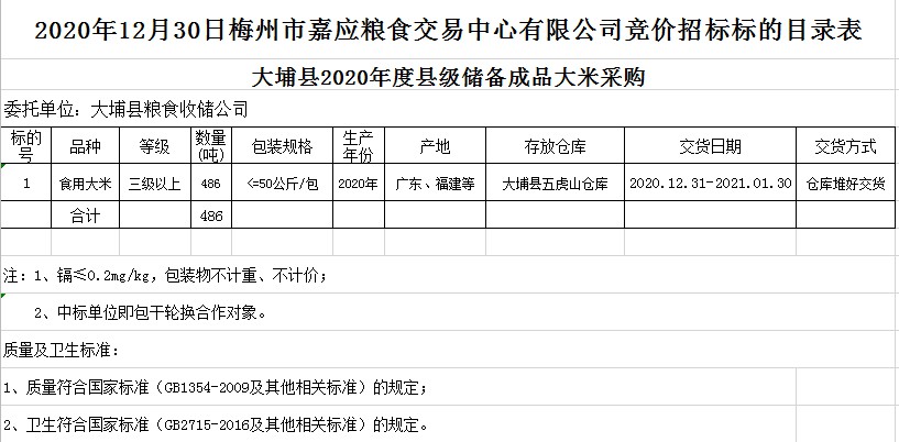 大埔縣2020年度縣級(jí)儲(chǔ)備成品糧采購(gòu)公開(kāi)招標(biāo)公告