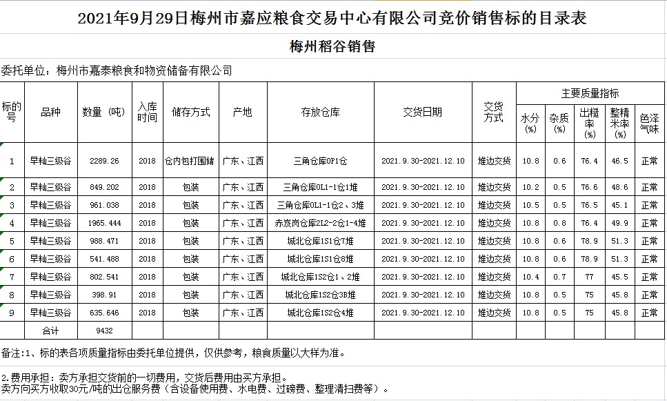受客戶委托,梅州市嘉應糧食交易中心有限公司定于2021年9月29日(星期三)舉辦糧食競價交易會。梅州市嘉泰糧食和物資儲備有限公司擬銷售2018年早秈稻9432噸。