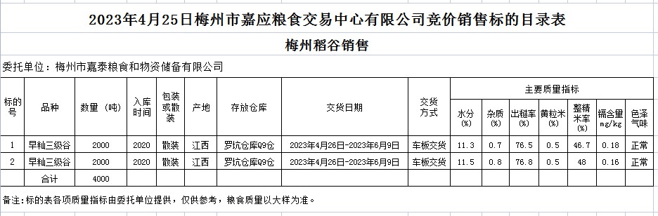 受客戶委托,梅州市嘉應糧食交易中心有限公司定于2023年4月25日(星期二)舉辦糧食競價交易會。梅州市嘉泰糧食和物資儲備有限公司擬銷售2020年早秈稻4000噸。