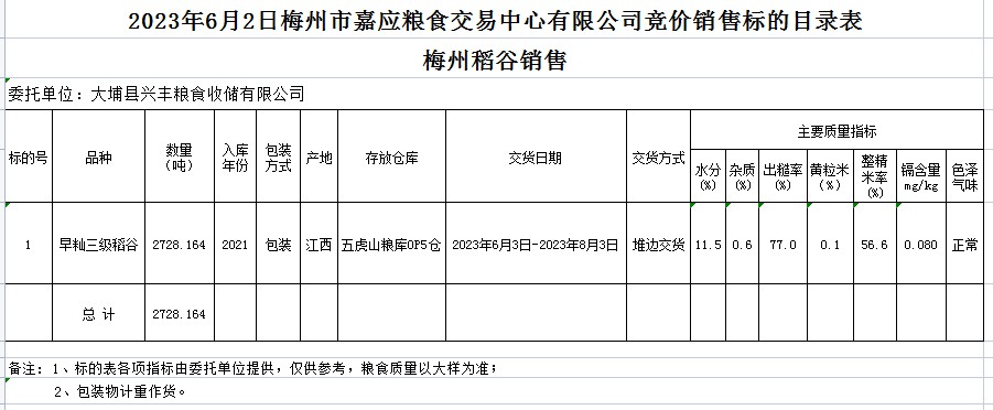 2023年6月2日大埔縣興豐糧食收儲(chǔ)有限公司稻谷銷售