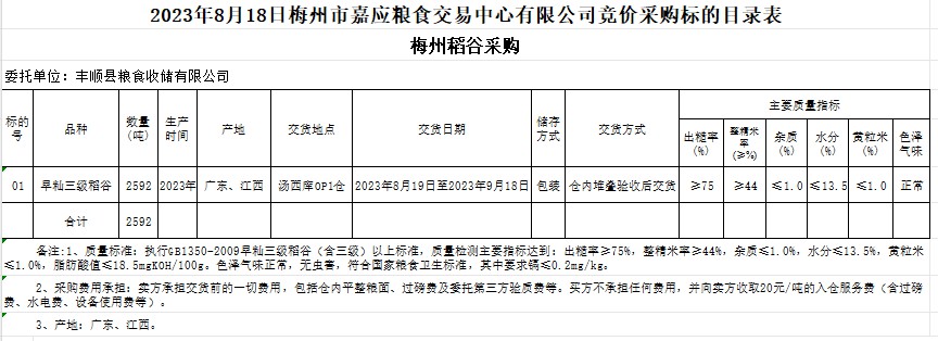 2023年8月18日豐順縣糧食收儲(chǔ)有限公司稻谷采購(gòu)
