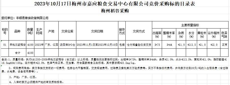 2023年10月17日豐順縣糧食收儲(chǔ)有限公司稻谷采購(gòu)