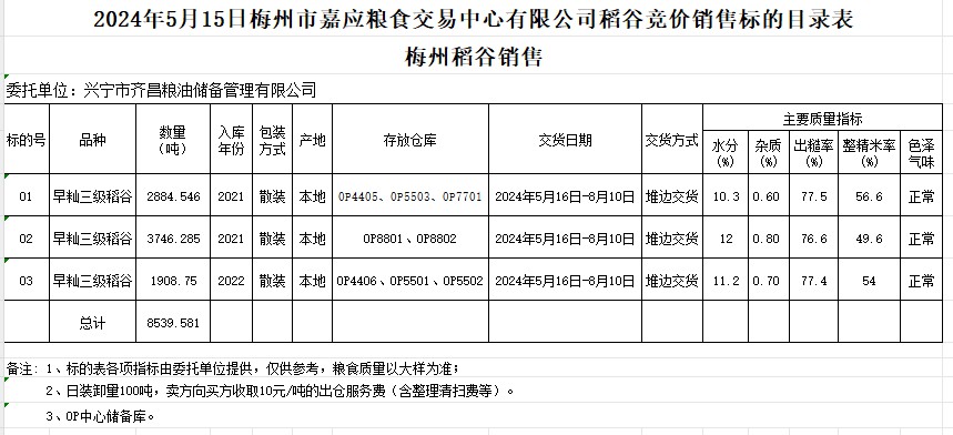 2024年5月15日興寧市齊昌糧油儲備管理有限公司稻谷銷售