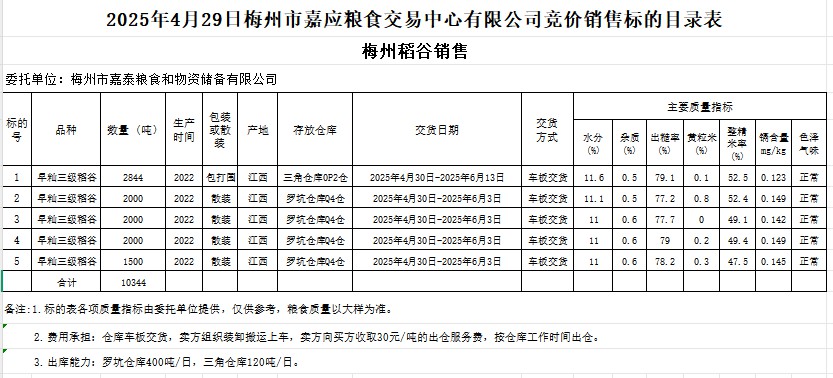2025年4月29日梅州市嘉泰糧食和物資儲(chǔ)備有限公司稻谷銷(xiāo)售