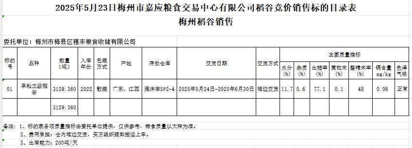 文件下載:2025年5月23日梅州市梅縣區(qū)穗豐糧食收儲有限公司稻谷銷售