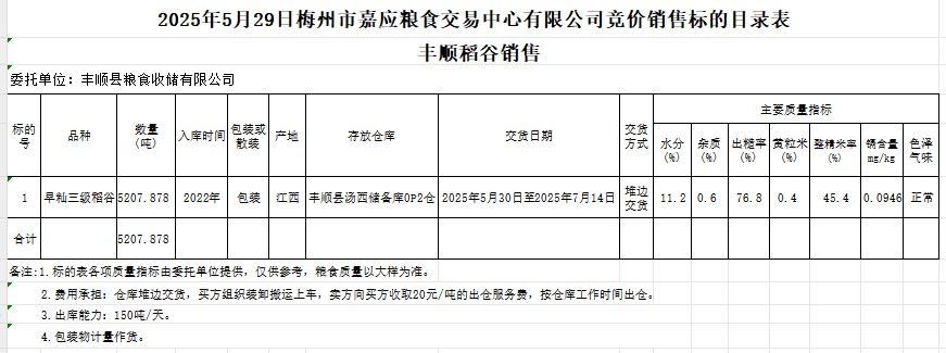 2025年5月29日豐順縣糧食收儲(chǔ)有限公司稻谷銷售